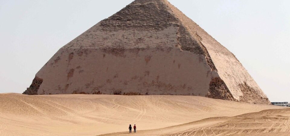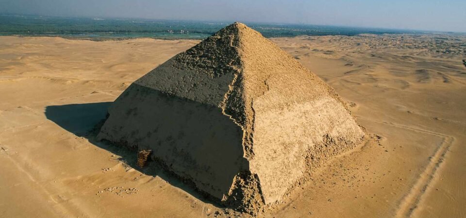 - Pyramid of Dahshur (The Red Pyramid): it has been built with limestone by King Senfru which is the first proper pyramid to be built in ancient Egypt & second largest pyramid in Egypt after the grand pyramid of Cheops in Giza & located about 10 kilometers to the South of Sakkara & it is about 100 meters in height and the length of each side of its square shaped base is 188 meters.